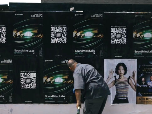 SoundMint NFTs are the generative combination of musical stems and visual layers, seamlessly blending into beautiful audiovisual pieces via our proprietary algorithm. Soundmint approached me to produce an animated poster to drum up excitement for their spot at NFT NYC. These were used across their socials, at the event as a hero animation where San Holo performed as well as a wheat-paste campaign displayed across New York
